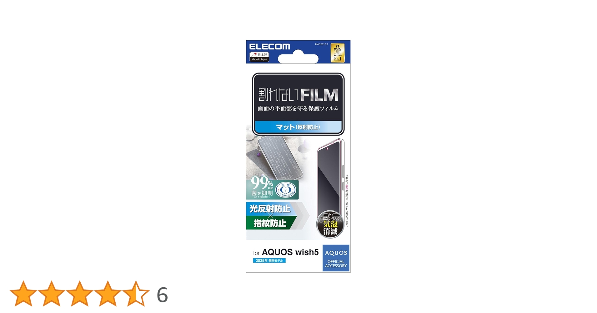 ■対応機種:AQUOS wish5(SH-52F)■セット内容:画面保護フィルム(指紋防止・反射防止タイプ)×1、クリーニングクロス(乾式)×1、ホコリ取りシール×1■材質:接着面:シリコン、外側:PET ■端末の画面を傷や汚れから守る、指...